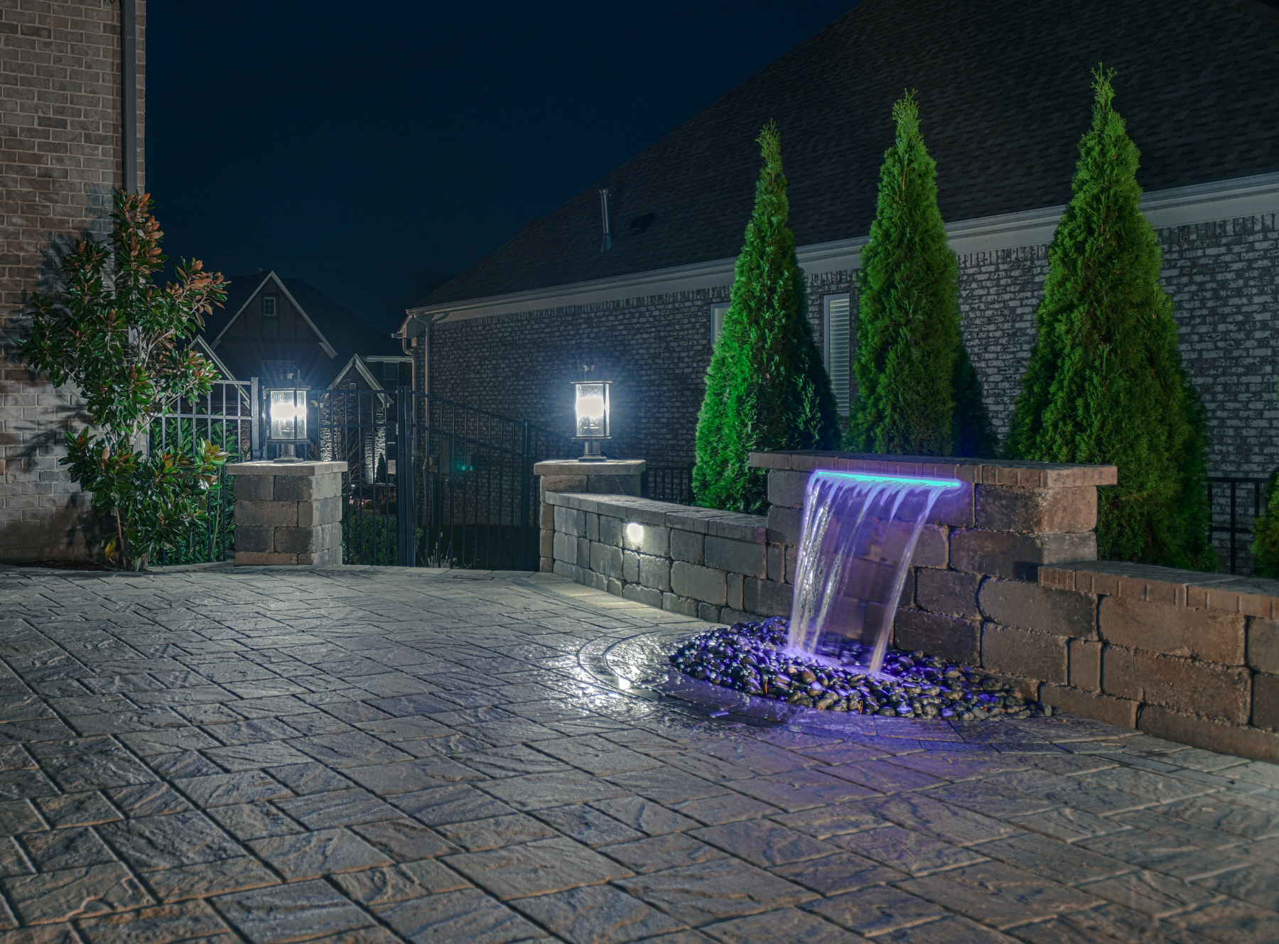 Add a special lighting or water feature to your hardscape project!